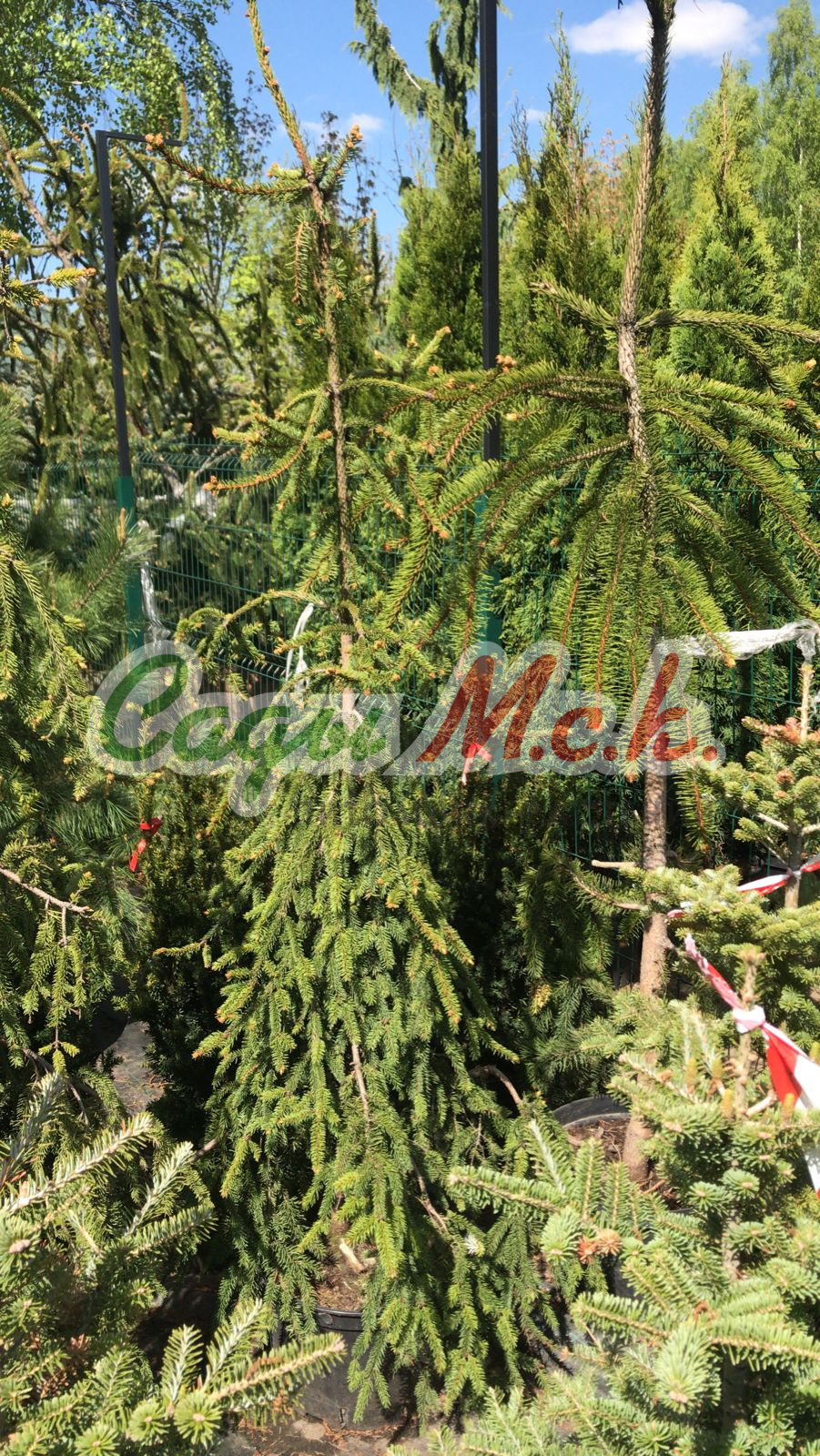 Медленно-растущее хвойное дерево с плакучей колоновидной формой кроны. Ветви и побеги повислые, ниспадающие вниз, нижние ветви красиво распластаны шлейфом по земле. Верхушка имеет заваливающийся характер роста.