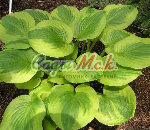 Хоста Аnn Kulра – многолетнее декоративное растение, образующее ярусный куст высотой до 50 см. Листовые пластины достаточно плотные, шелковистые, со слегка волнистым краем, небольшими выемками и сильно выраженным жилкованием. Они образуется весьма декоративный, плотный и компактный куст, который в середине лета зацветает, выбрасывая цветоносы с небольшими, лавандового цвета колокольчиками. Но заметным растение становится благодаря цвету своих декоративных листьев. Сердцевидные, голубовато-зеленые с золотисто-кремовым центром и зеленым краем – такую красивую окраску невозможно не заметить. Со временем светло-кремовый центр становится шире, а вот окантовка листа, наоборот, сужается. Гибридный сорт хорошо себя чувствует и в тени, и на солнце, предпочитая купаться только в утренних его лучах. Он может длительное время расти на одном месте. Но для сохранения расположенной по центру полосы его желательно часто делить.