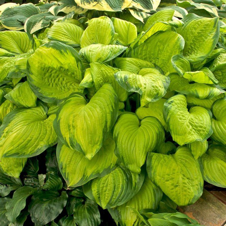 Хоста гибридная Стейнд Гласс - очень эффектный сорт с интересным окрасом. Размер куста: высота 50 см, ширина 100 см. Листья золотисто-желтые с широкой темно-зеленой каймой, с прожилками, цветки крупные, белые, душистые. С возрастом куст разрастается, становится мощным. Лучше всего растет на влажных, хорошо дренированных почвах, богатых органикой. В засушливый период нужно регулярно поливать хосту, кроме того, хорошо мульчировать почву для сохранения ее влажности. Растение прекрасно зимует. Хоста гибридная Стейнд Гласс эффектно смотрится у водоёмов.