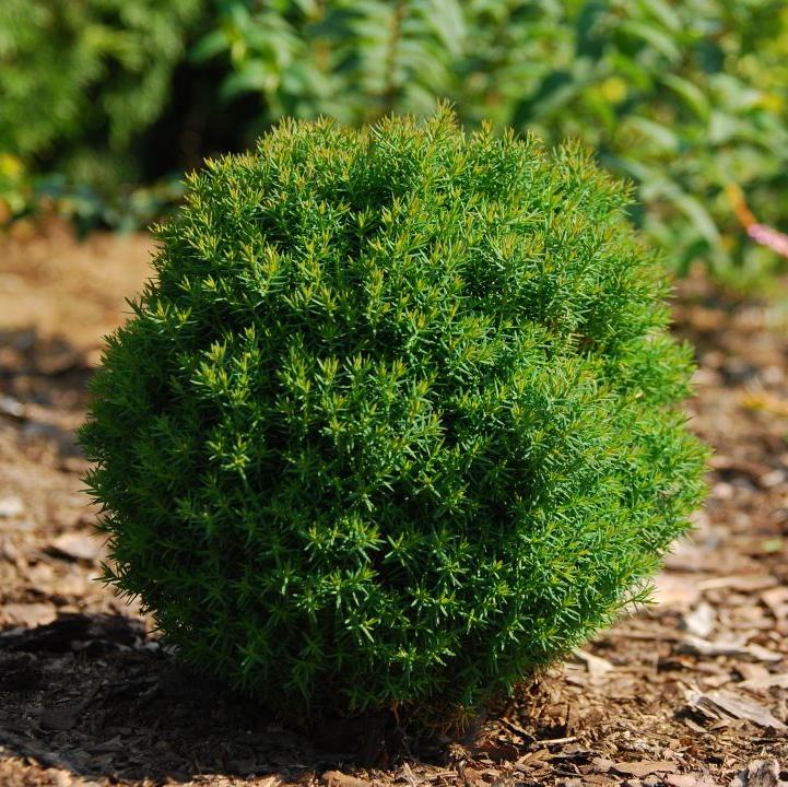 Карликовый подушковидный хвойный кустарник. Крона густая, плотная, побеги тонкие близко расположены к друг другу. Растет очень медленно по 2-3 см год. В 10-летнем возрасте диаметр кроны 0,3 м, позже достигает размеров 0,5 м. Хвоя игольчатая, не колючая, темно-зеленая, зимой становится бурой. Нуждается в плодородной почве, плохо переносит сухость воздуха.<br>