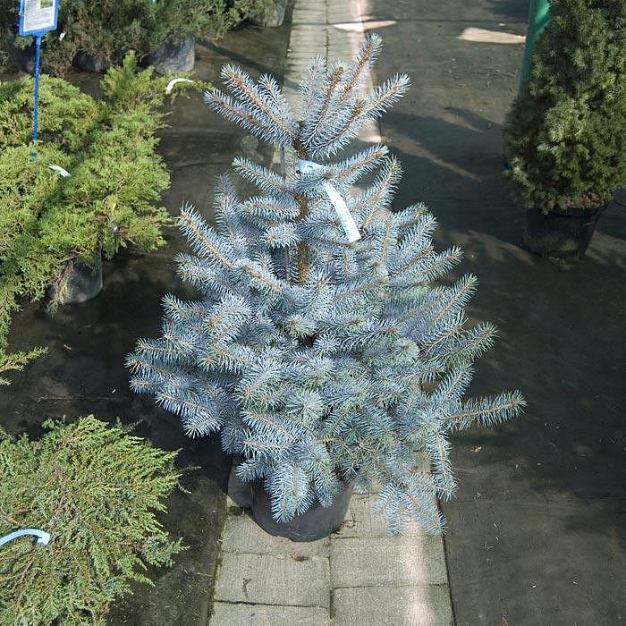Удивительной красоты ёлочка с голубым окрасом кроны, который с возрастом становится всё более ярким и выраженным. Дерево быстро растёт, эстетично выглядит благодаря своей плотной, ровной, симметричной конической форме. Эта красавица сказочно хороша с голубой хвоей как зимой, так и летом. Её иголочки плотные и приятные, сплетаются в голубые кисточки с белой поволокой. Её макушка не выстреливает отдельной веткой, она всегда пышная.
